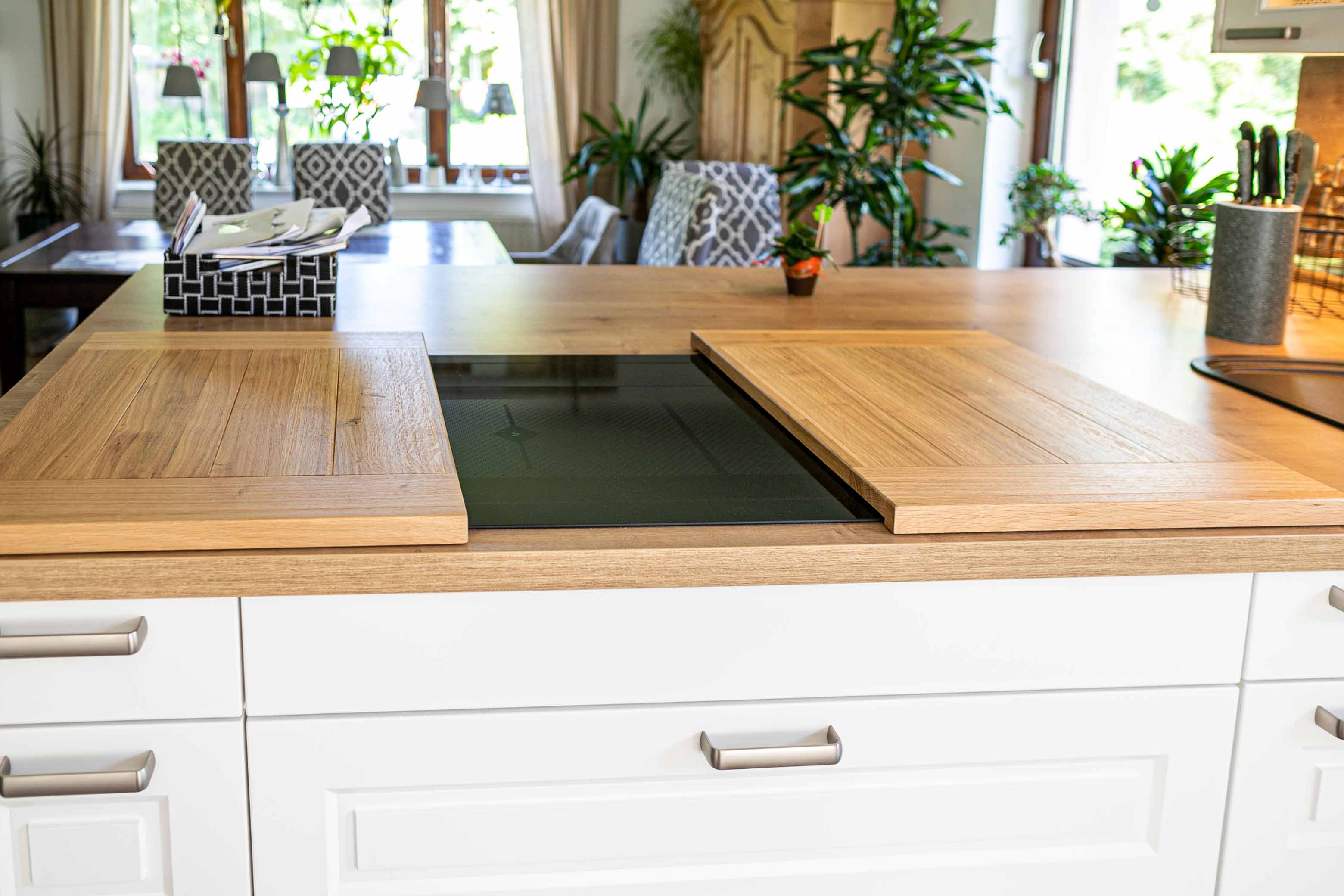 Details: Mattlack weiss, Arbeitsplatte Dekor Asteiche Natur
